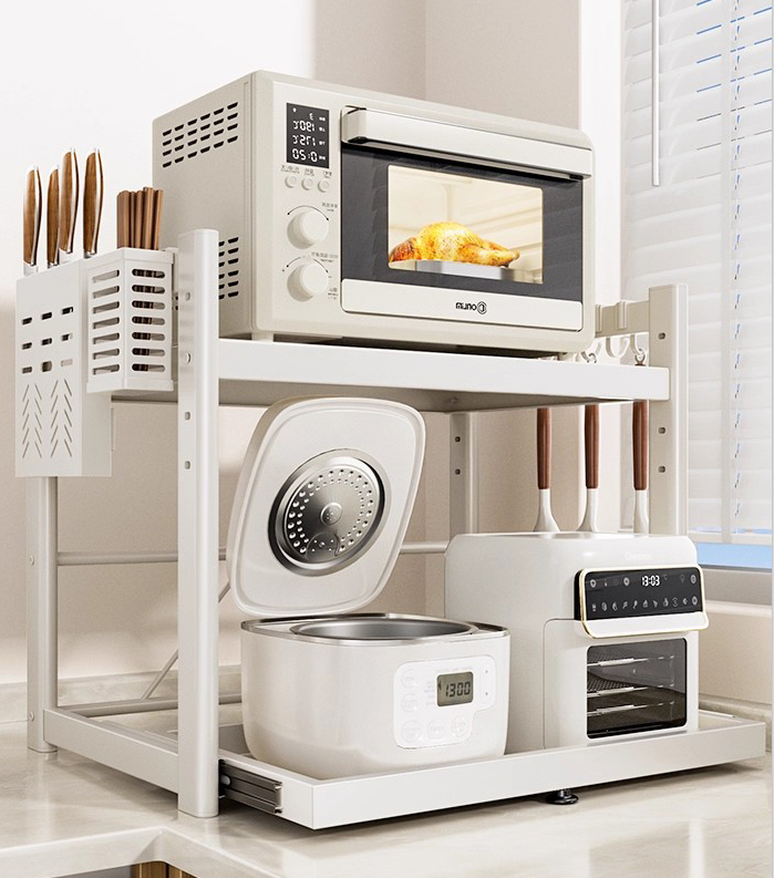 মাঝারি থেকে বড় রান্নাঘরের জন্য: বড় সংগঠকরা (যেমন পুল-আউট ক্যাবিনেট সিস্টেম, বহু-স্তরযুক্ত পাত্রের ট্রে, বা ওয়াল-মাউন্ট করা টুল র্যাক) বিশৃঙ্খল সৃষ্টি না করেই আরও আইটেম পরিচালনা করতে পারে। এগুলি বিশেষভাবে উপযোগী যদি আপনার কাছে সরঞ্জাম বা মশলার বিস্তৃত সংগ্রহ থাকে, কারণ তারা স্ট্যান্ডার্ড ক্যাবিনেটে ভিড় রোধ করে।