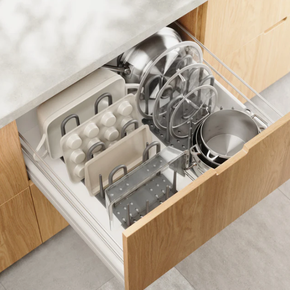 - প্যান্ট্রি / রান্নাঘর: তারের শেল্ভিং আদর্শ — এটি বায়ু সঞ্চালনের অনুমতি দেয় এবং ছিটকে পরিষ্কার করা সহজ করে তোলে। ছোট আইটেম জন্য শেলফ লাইনার যোগ করুন.