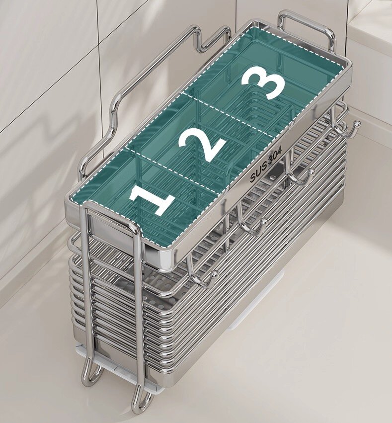 থ্রি ফ্রেম ইউটেনসিল হোল্ডারের একটি স্ট্যান্ডআউট বৈশিষ্ট্য হল এর বুদ্ধিমান থ্রি-কপার্টমেন্ট ডিজাইন। অনেক একক কম্পার্টমেন্ট ধারকদের থেকে ভিন্ন যেগুলি পাত্রগুলিকে একত্রে এলোমেলো করে রাখে, এই নকশাটি শ্রেণীকরণের অনুমতি দেয়। আপনি সহজেই আপনার চামচ, কাঁটাচামচ এবং ছুরিগুলি আলাদা করতে পারেন, এমনকি চিমটি বা স্প্যাটুলার মতো বিশেষ পাত্রে একটি অংশ উত্সর্গ করতে পারেন। এটি তাড়াহুড়ো করে আপনার প্রয়োজনীয় টুলটি খুঁজে পাওয়া সহজ করে না বরং আপনার কাউন্টারটপকে পরিপাটি দেখায়। অন্য কিছু হোল্ডারের একটি একক বড় জায়গা থাকতে পারে, যা দ্রুত একটি বিশৃঙ্খল জগাখিচুড়িতে পরিণত হতে পারে, পাত্রগুলি পড়ে যায় এবং আটকে যায়। থ্রি ফ্রেম ইউটেনসিল হোল্ডার, এর সুচিন্তিত বিন্যাস সহ, নিশ্চিত করে যে প্রতিটি পাত্রের নির্দিষ্ট স্থান রয়েছে, এটি একটি আরও সংগঠিত এবং দক্ষ রান্নাঘরের প্রচার করে।